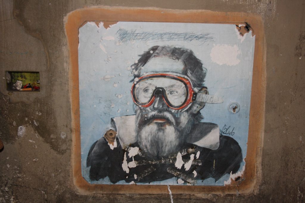 Blub es un artista de identidad desconocida. Lo único que sabe de él es que nació en Florencia y que la idea de pintar sumergiendo sus representaciones bajo el agua surgió en Cadaqués pueblo natural de Dalí. Allí pinto al hijo de uno de sus amigos con unas gafas de bucear, sin saberse muy bien el motivo.